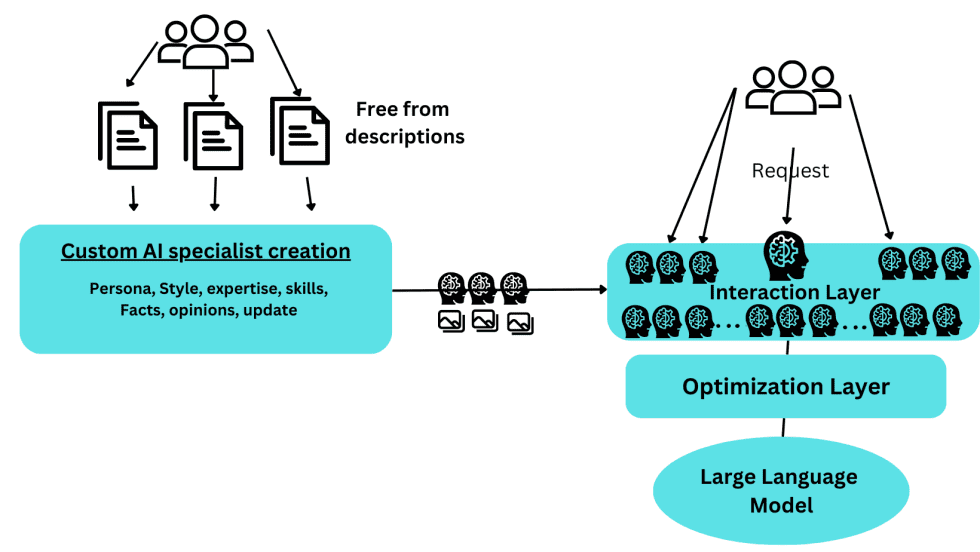 - Knowledge sharing: users can make their custom AI specialists public for other users to interact with while the description they used to create it remains private.